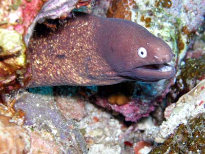 ![]() 胡椒海鳗(peppered moray),可长至38cm,以小鱼为主要粮食 |